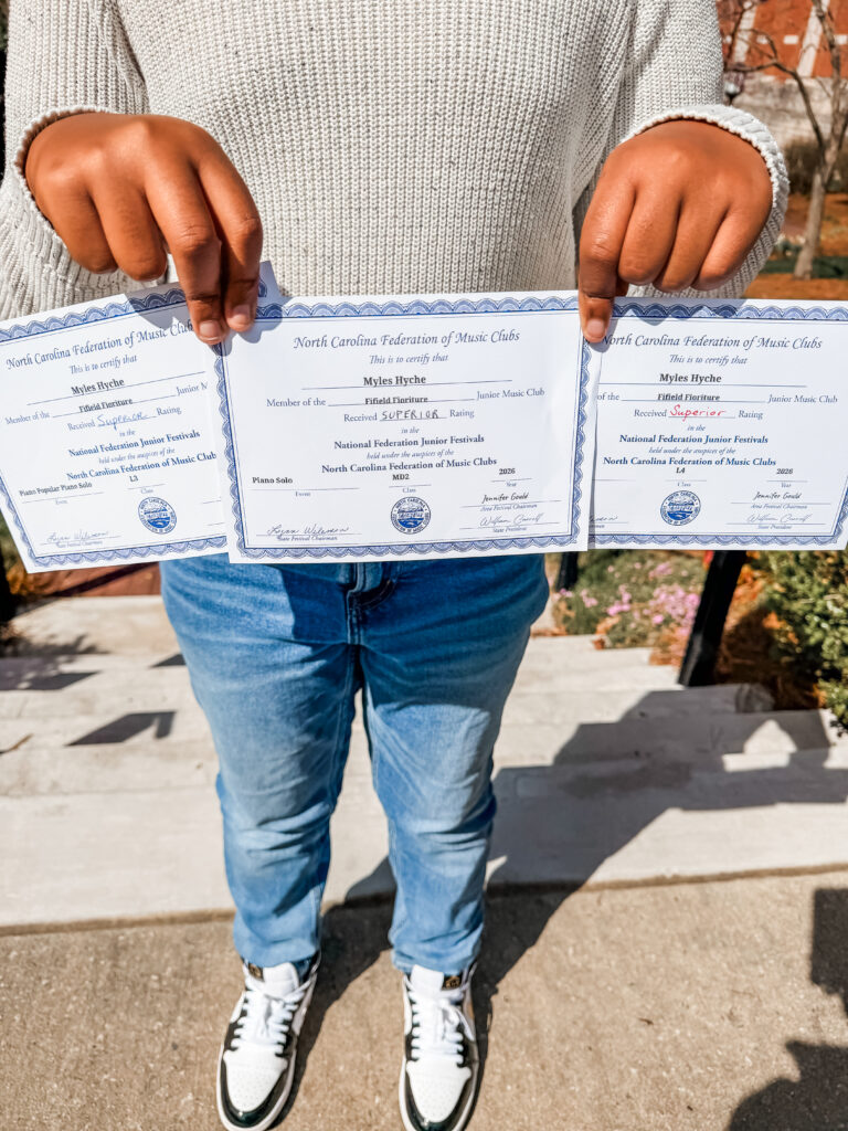 Upper level Advanced students may participate in state and regional competitions such as the MTNA Competitions, East Carolina Piano Competition, Peter Perret Youth Talent Search, The Greensboro Youth Symphony Concerto Competition, to name a few. Mrs. Fifield’s students have won such competitions as the Gardener-Webb Concerto Competition, the East Carolina Piano Competition, GYC Artistry Awards, Meredith College Chopin Competition, and the Piano and Organ Distributors Scholarship. Her students have also placed in such competitions as The Peter Perret Youth Talent Search, the Greensboro Youth Symphony Concerto Competition and the Gustavo Romero Piano Competition. Advanced students regularly perform at retirement homes in the community.